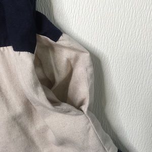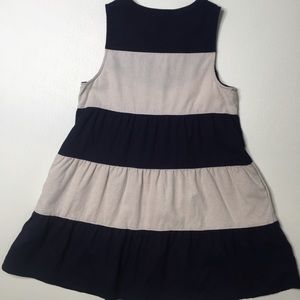 Entro black and khaki colored smock dress, wide horizontal stripes, 3 button front, pullover style, side pockets, Rayon/Linen. Bust 36”, Length 34”. Great Condition! (D16)