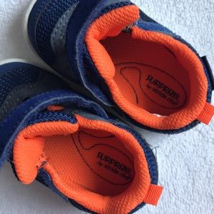 Extremely faint marks on bottom soles, not noticeable unless you flip shoe and Really look for them.