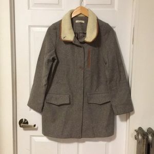 Brought this coat on a trip to Madrid in a small boutique. It’s a boxy shape that hits below the hips and has a wool exterior and a polyester lining.