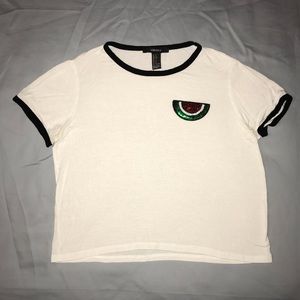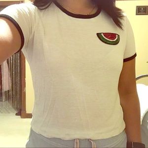 The sequined watermelon on the upper left side of the shirt makes this the perfect summer time shirt!
