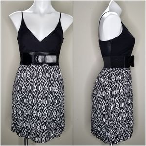 DEB | Black & White Belted Spaghetti Strap Dress S