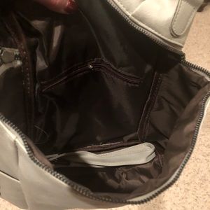 Beautiful bag, light grey color. Made from vegan leather. Approx measurements 12.6” X 10.2” X 4.7” comes from a smoke free home