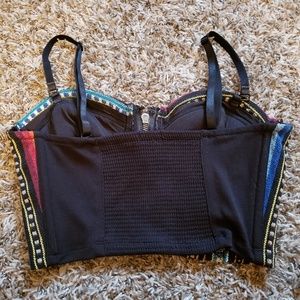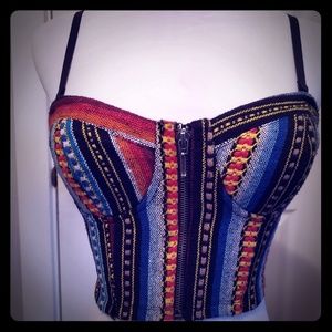 Forever 21 stretchy tribal spaghetti strap crop tank top with sweetheart neckline and front zipper. Like new, worn once only for a few hours.