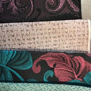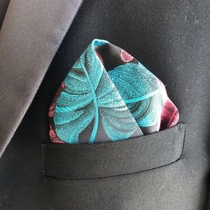 Set of six vintage pocket squares in shades of mauve, teal and black