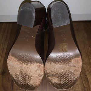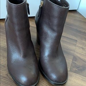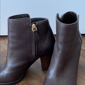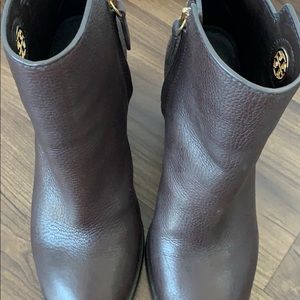 The best heeled bootie! Tory Burch heeled bootie with subtle emblem. 2.5-3” heel. Excellent condition/gently worn. Brown leather. Perfect for fall and winter!
