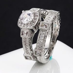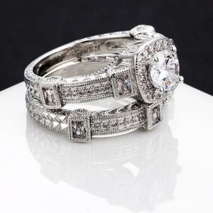 💎NEW💎 18K WHITE GOLD PLATED ART DECO BRIDAL SET