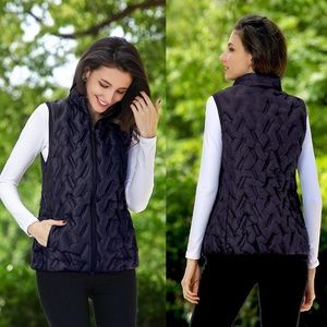 Cool weather, closet must have! Tangerine super light weight puffer vest with unusual basket-weave quilted look. Available in creme, black, burgundy and navy blue. See my other listing for other colors and sizes. Machine wash and dry. Shell 100% Nylon, Filler 100% Polyester. FYI Tangerine is a Women Owned firm. #puffervest #packablevest
