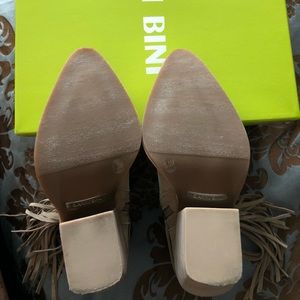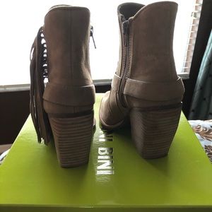 Gianni Bini tan suede bootie with fringe