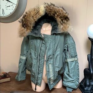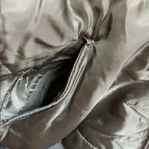EUC. Inside and outside pockets. Elastic waistband. Two bottom snap buttons and stylish loops for front buttons. Heavy duty quilted jacket with front zippers. Beautiful style!