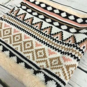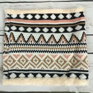 Warm Knitted Infinity Ring Scarf Lined with Fleece