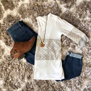 Such a cute top to wear in any season, but especially fall! This shirt is so soft and comfortable and runs a little closer to a medium as opposed to a small. Wear it alone or with a cardigan or scarf!