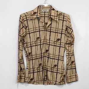 Vintage Burma Oleg Cassini Men's Silky Disco Button Front Shirt Small