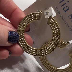 New with tags, gold hoop earrings by Lia Sophia. These earrings were featured in Oprah Magazine and in wonderful condition.