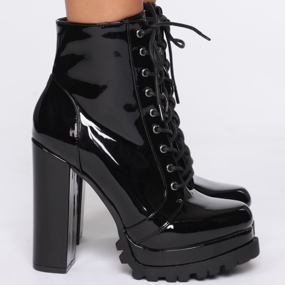 Black Patent Leather Chunky Heel Platform Boot