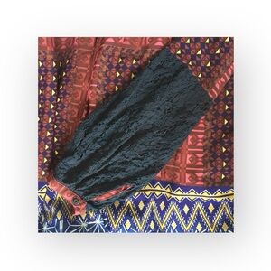 Incredible boho shirt with a stunning ethnic mixed print pattern and lace detail insets. Hidden button down placket and slight hi/low hem. Palm Beach style. Youโll love โฅ