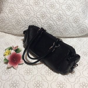 Preston & York 100% cow leather, two side pockets, inside one zip, two open compartments and two pen/pencil slots. A gently used bag clean inside and out, silver hardware,