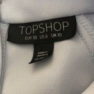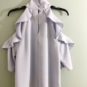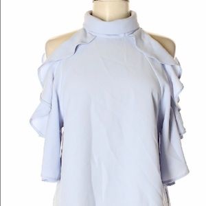 Periwinkle blouse with high neck button closure around back. Sexy cold shoulder and in excellent condition.