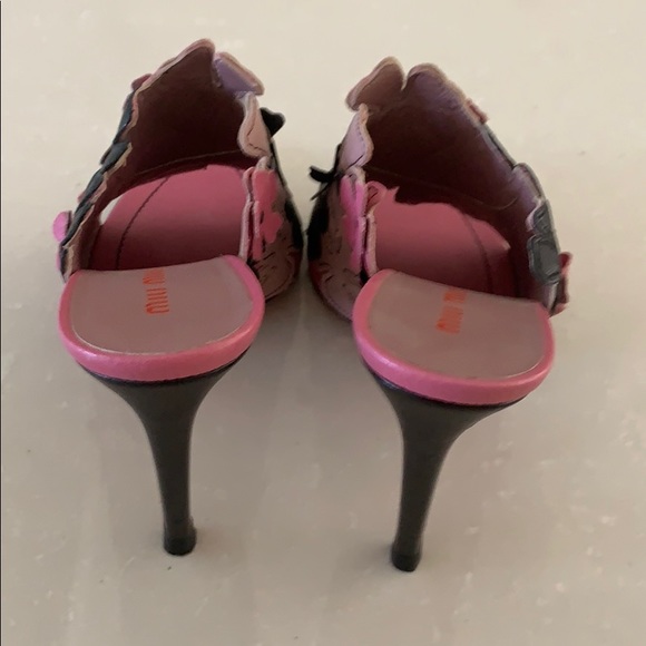 MiuMiu pink and black heels. Stunning flower detail. Super sexy and fun. Worn once