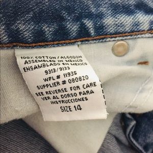 Lovely like new lei brand denim jean shorts high waisted, size kids 14. Has embroidered sewn rainbow with love, a heart shaped o and a flying red heart with peace in a line cloud. These are in perfect condition. Measurements are 28” waist 37” hips and 12.5” long. Also would fit a women’s size 0 A-03