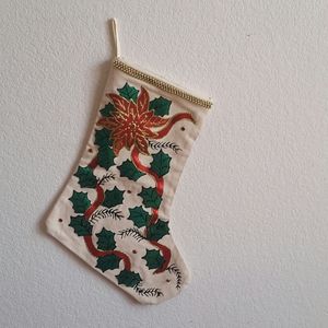 #82 Christmas Stocking Poinsettia Handmade Vintage 16"