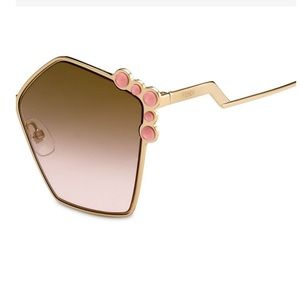 Pink metal studded pentagonal sunglasses from Fendi Eyewear featuring gold-tone arms, a brand logo on external arm, a hinged structure and gradient lenses.