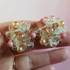 Vintage bead cluster clip back earrings. The beads are shades of pink and white color. The backs are tarnished but still work fine. They're signed GERMANY on the backs. From a smoke free home. Offers welcome:)