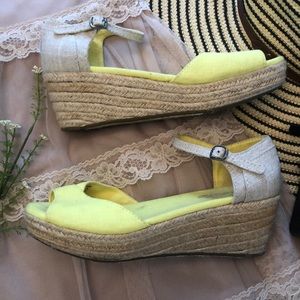 TOMS Yellow Espadrilles Wedges W 9.5