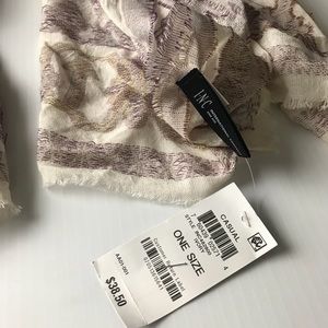 Brand new with tags, INC International ivory clipped geo jacquard scarf wrap. Beautiful geometric print and an on trend ‘raw hem’ look make this shawl an absolute must have! Can be worn in scarf form or as a shawl.