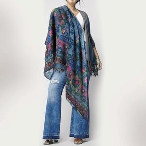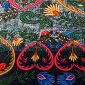 Floral Hippie Shawl. Printed Denim Swedish Folk Chiffon Scarf