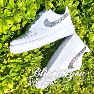 ♥ ONE PAIR NIKE AIR FORCE 1 SHOES WITH SWAROVSKI® Xirius Rose-Cut 2 OUTTER SWOOSH LOGOS