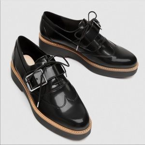 NWT Zara platform derby shoes - lace up with buckle detail - excellent new condition