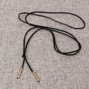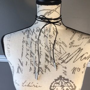Black vegan leather cord choker with silver tips. Measures 63” in length