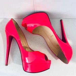 Louboutin LADY PEEP 150 Neon Pink Pump