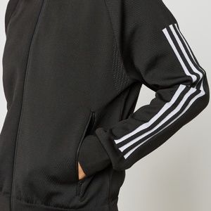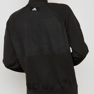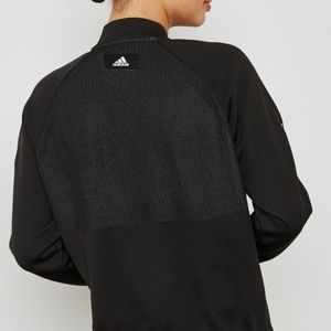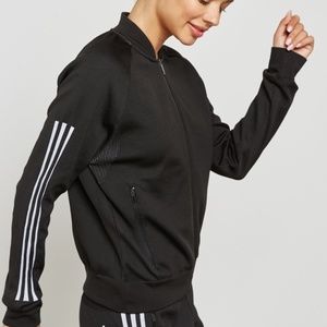 Adidas bomber jacket with stretchable poly-cotton blend fabric/zipper closets in front /dual side slip-in zipper pockets/Adidas signature branding print.Sold out everywhere.New with tag /size S.