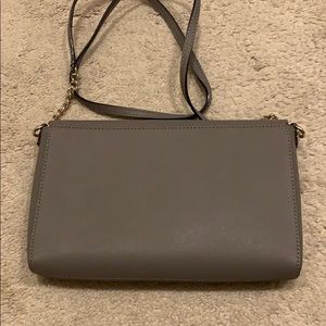 Smoky grey, super professional crossbody. Silver hardware. No stains/rips/scuffs. Cross grain leather.