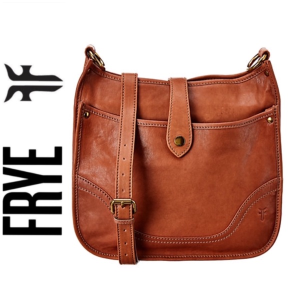 Stunning large crossbody in cognac made by the renowned maker FRYE known for top quality leather and craftsmanship.