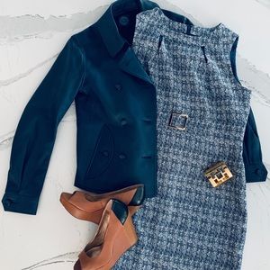 Double breasted notch collar w/ buttons & metal hook & eye closure
