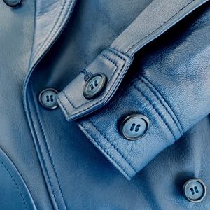 Supple navy leather, 100% sheep, smooth, lightweight, molds to body shape