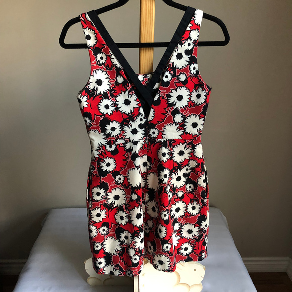 Zara Trafaluc Red, White & Black Floral Dress - with zip closure - size medium