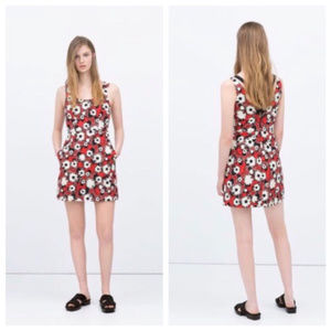 ZARA TRAFALUC Red Black White Floral zipup dress M
