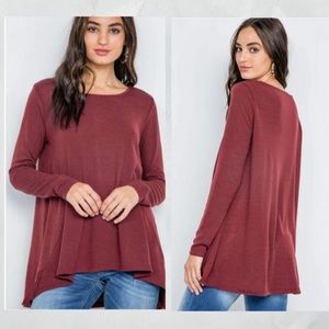 Very J - These run Large! Wine Long Sleeve Loose Fit Knit Top