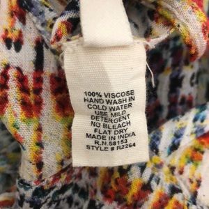 V-neck - Sleeveless - Strappy cage back - Embroidered waist detail - Allover print - Woven construction