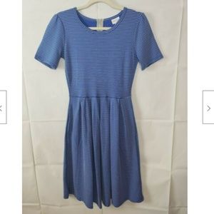 LuLaRoe Womens Amelia Dress Striped Blue White With Pockets Midi Fit & Flare XS