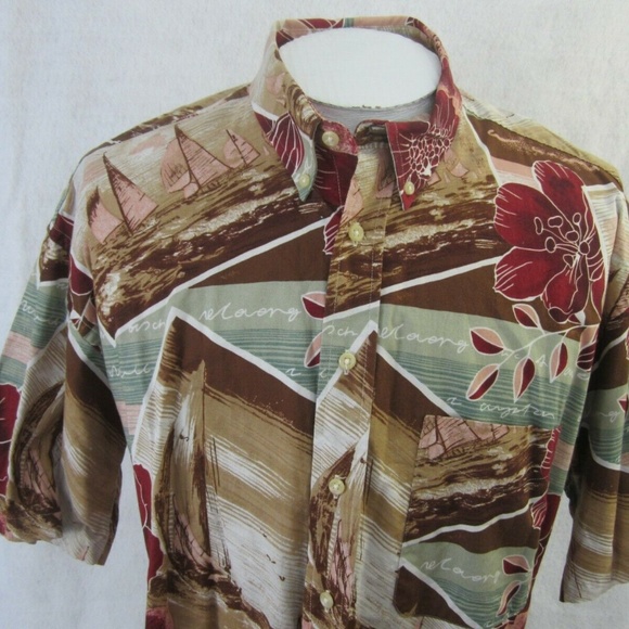 Natural Issue Men Hawaiian ALOHA shirt pit to pit 26 XL sail boats floral luau