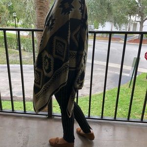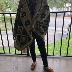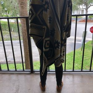 This is like a big rectangle cut it in the middle so you can use as a vest is super warm and cozy perfect for winter and fall!!