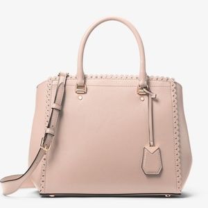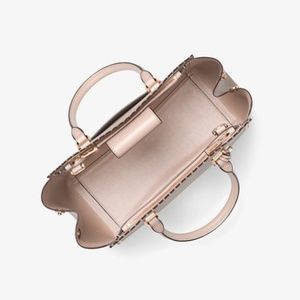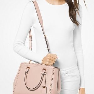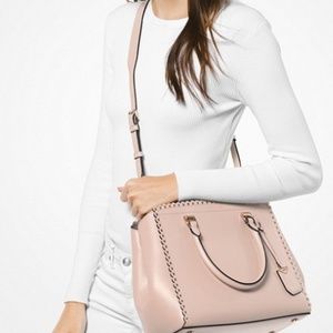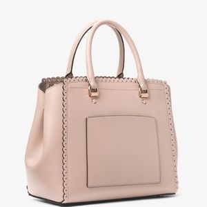 Crafted from smooth leather, this Benning satchel opens to a sizable interior perfect for stowing all the essentials. It’s detailed with romantic scalloped trim and gleaming grommets that accentuate its structured silhouette.