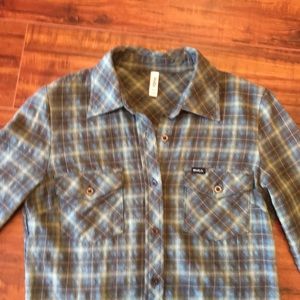 RVCA Like New Brown and Green Plaid Flannel Shirt