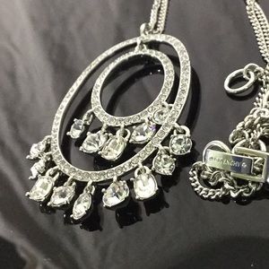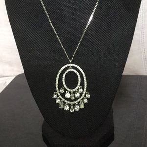 Givenchy16”SilverNecklaceW/3”Ext. Inner Oval(1”Wx1 1/2”L)Ring Sparkling Crystals W/5 Hanging(1 1/4cm)Round,Square, Oval Crystals. Outer Oval(1 1/2”Wx2”L)Ring Of Sparkling Crystals W/9 Hanging(1 1/4cm) Round, Square, Oval Crystals. NWOT (CL989)