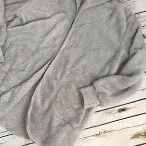 This soft, lightweight fleece cardigan is super cozy, perfect for cold winter days. It is open in the front, with cuffed sleeves, and a hood to keep you warm. Even better, it has pockets! Perfect for lounging around the house, and a great layering piece as the weather starts to cool.