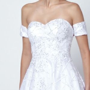 Embroidered lace ball gown dress with arm bands. Sizes xs sextra small s small m medium l large xl extra large 2x Please view the size chart in the photos section with the bust,waist and hip measurements underneath each size.